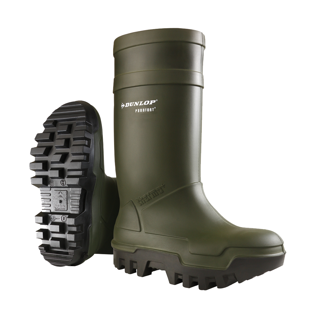 Сапоги Dunlop Purofort Thermoflex full safety. Материал: Полиуретан DUNLOP® PUROFORT®, инновационный материал с уникальными качествами: малым весом и превосходными изоляционными свойствами. Отличается большим сроком службы, эластичностью даже при низких температурах (до -20°С) и устойчивостью к минеральным, животным, растительным жирам, маслам, удобрениям, кислотам, дезинфицирующим средствам и различным химическим веществам Подкладка: антибактериальная, комфортная, отводит влагу Подошва: SRA, противоскользящая, с самоочищающимся протектором с глубоким рисунком, гасит ударные нагрузки в области пятки, антистатическая Подносок: стальной 200 Дж Соответствие стандарту: EN ISO 20345, ТР ТС 019/2011